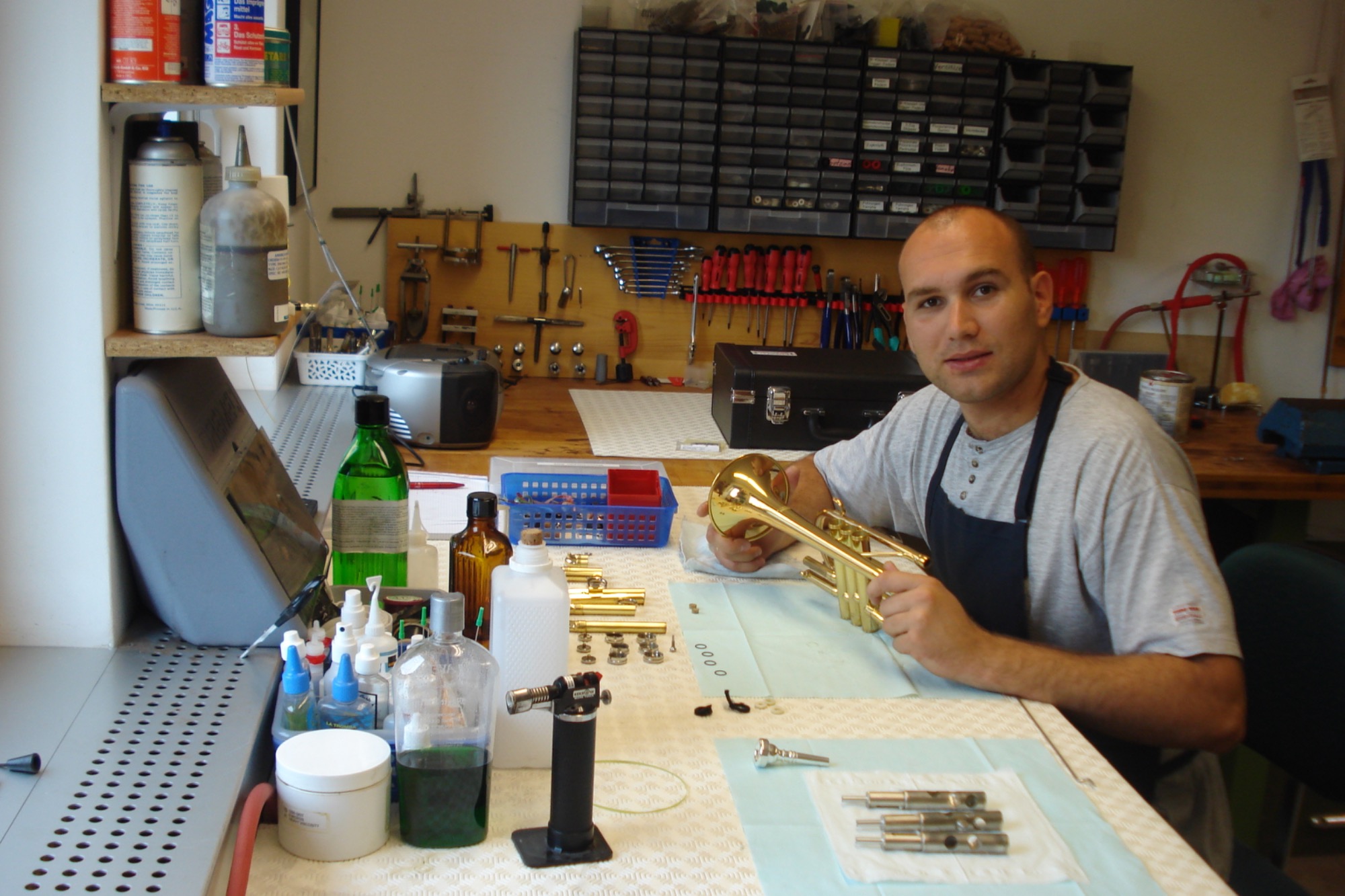 Parallel dazu begann er sich intensiv mit der Reparatur von Blasinstrumenten zu beschäftigen und sammelte wertvolle praktische Erfahrungen.