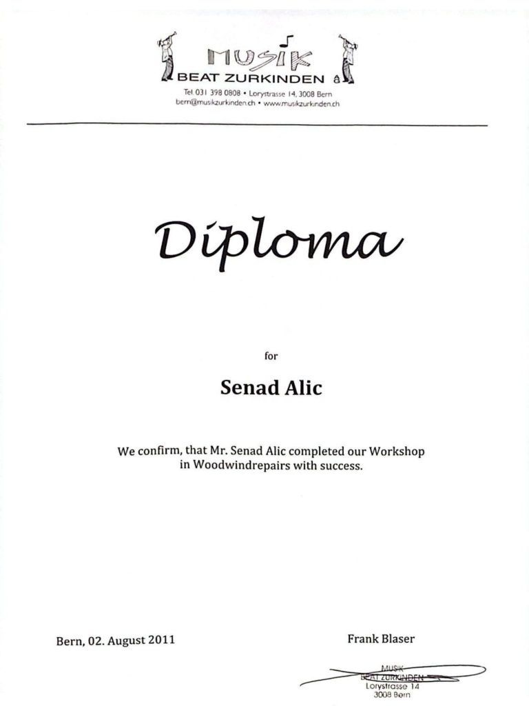 Senad Alic - Diplomierter Klarinettist und Instrumentenbauer mit über 20 Jahren professioneller Erfahrung in der Reparatur und Wartung von Blasinstrumenten.