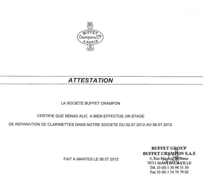 Sein weiterer beruflicher Weg führte ihn nach Paris, in die weltbekannte Werkstatt von Buffet Crampon, einem der führenden Hersteller von Blasinstrumenten.